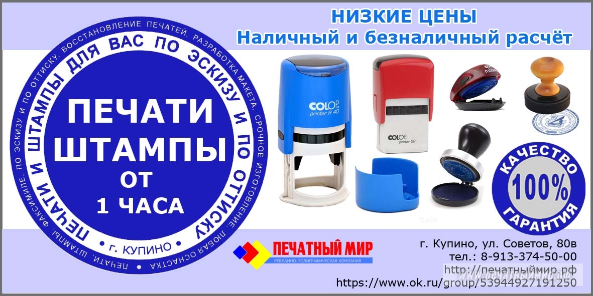 • Изготовление печатей, штампов, факсимиле